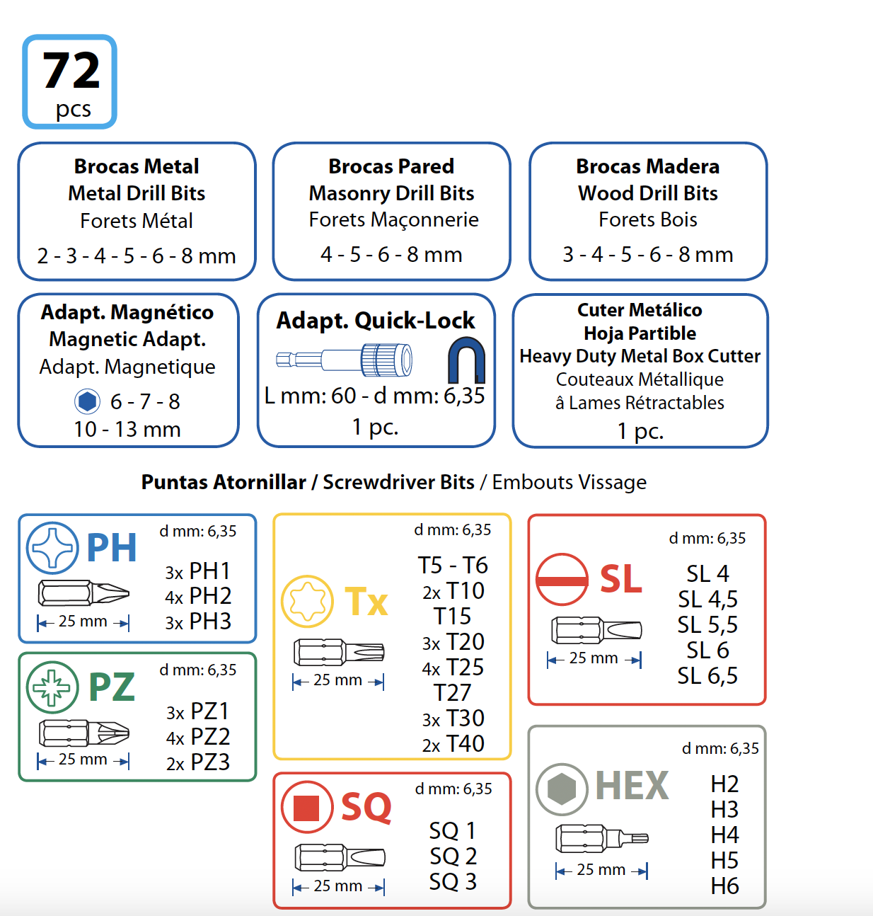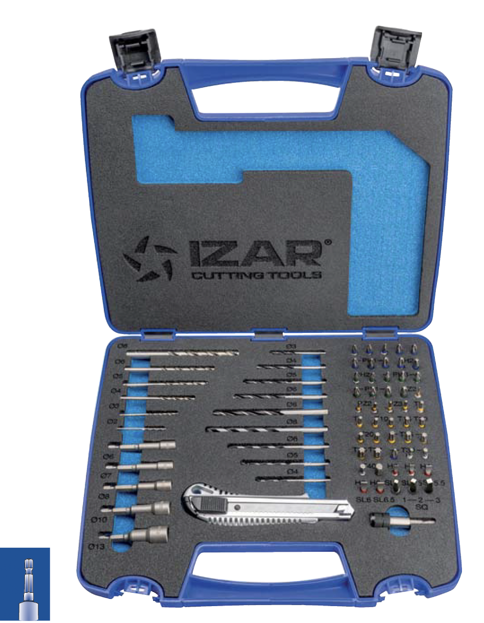 Coffret Jeu de forets et embouts vissage avec cutter et porte embout magnétique 72 PCS – IZAR