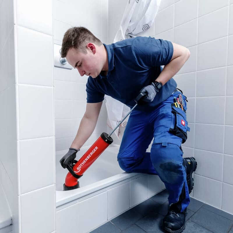Outil optimal pour les installateurs, les concierges et les nettoyeurs de canalisations pour l’élimination rapide des obstructions dans les tuyaux de raccordement des lavabos et des éviers, des baignoires et des toilettes en utilisant le principe d’aspiration/pression.