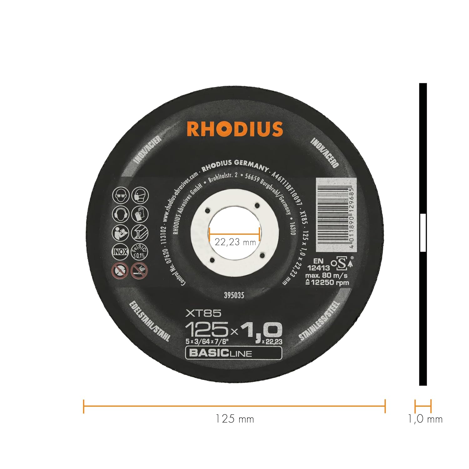 Disques à tronçonner XT85 125 x 1,0 x 22,23 Acier/Inox – RHODIUS