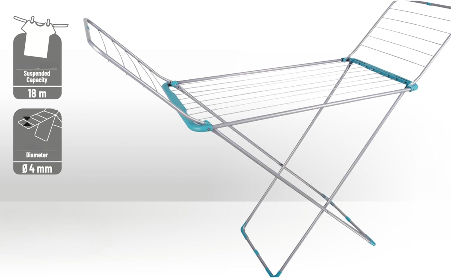 Facilitez le séchage de votre linge grâce à cet étendoir SARAYLI mesurant 174 x 111 x 55 cm, équipé de barres pour une surface de séchage de 18 mètres. Idéal aussi bien pour les petits articles que pour les draps.