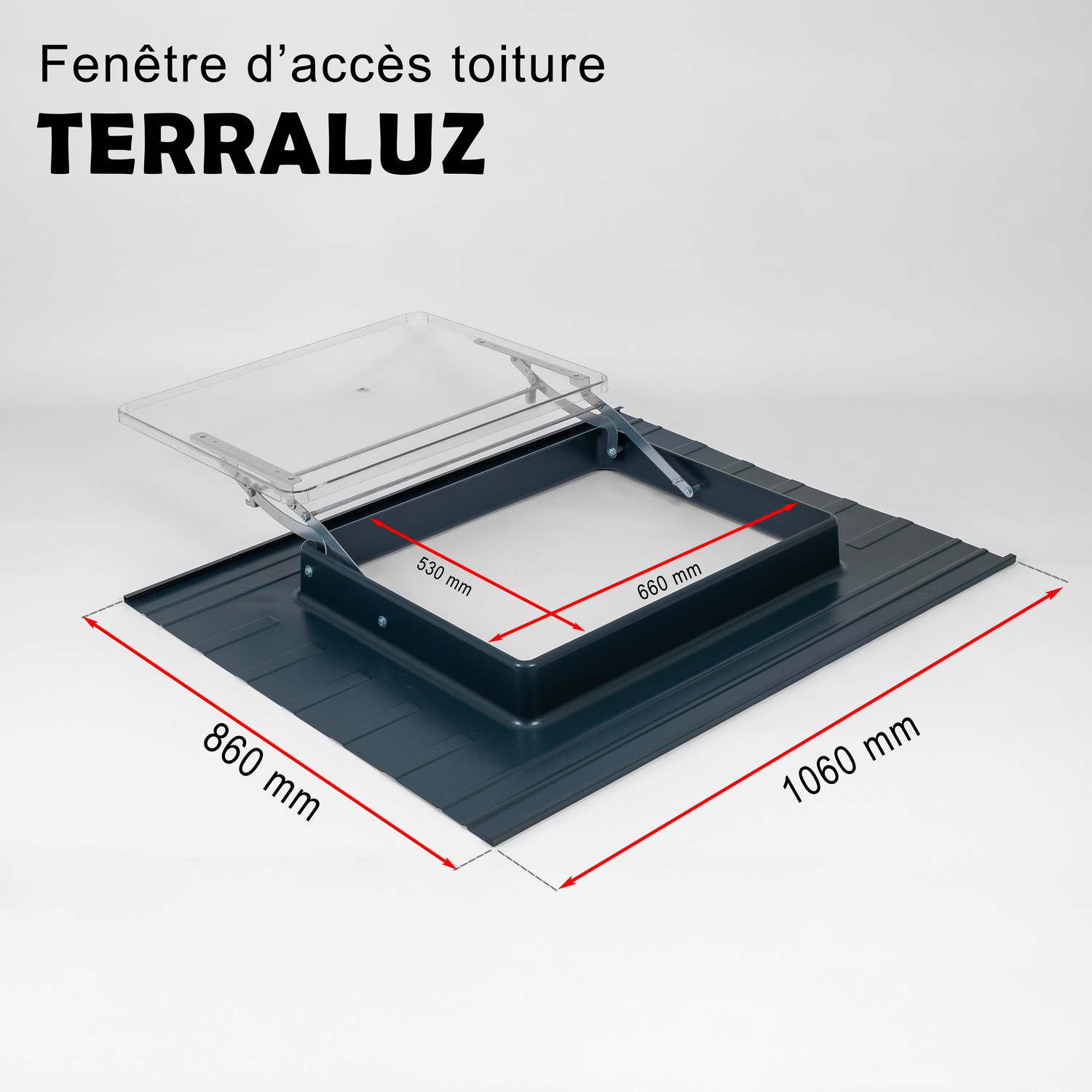 Fenêtre d’accès toiture pour combles non aménagés 66 x 53 cm – Vitre synthétique incassable, Gris Anthracite RAL 7016 – LPP TERRALUZ