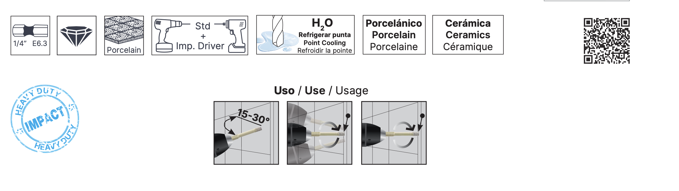 Foret-Trépan diamant pour porcelaine/carrelage, queue E6.3 1/4 – 12,00 mm – IZAR 31568