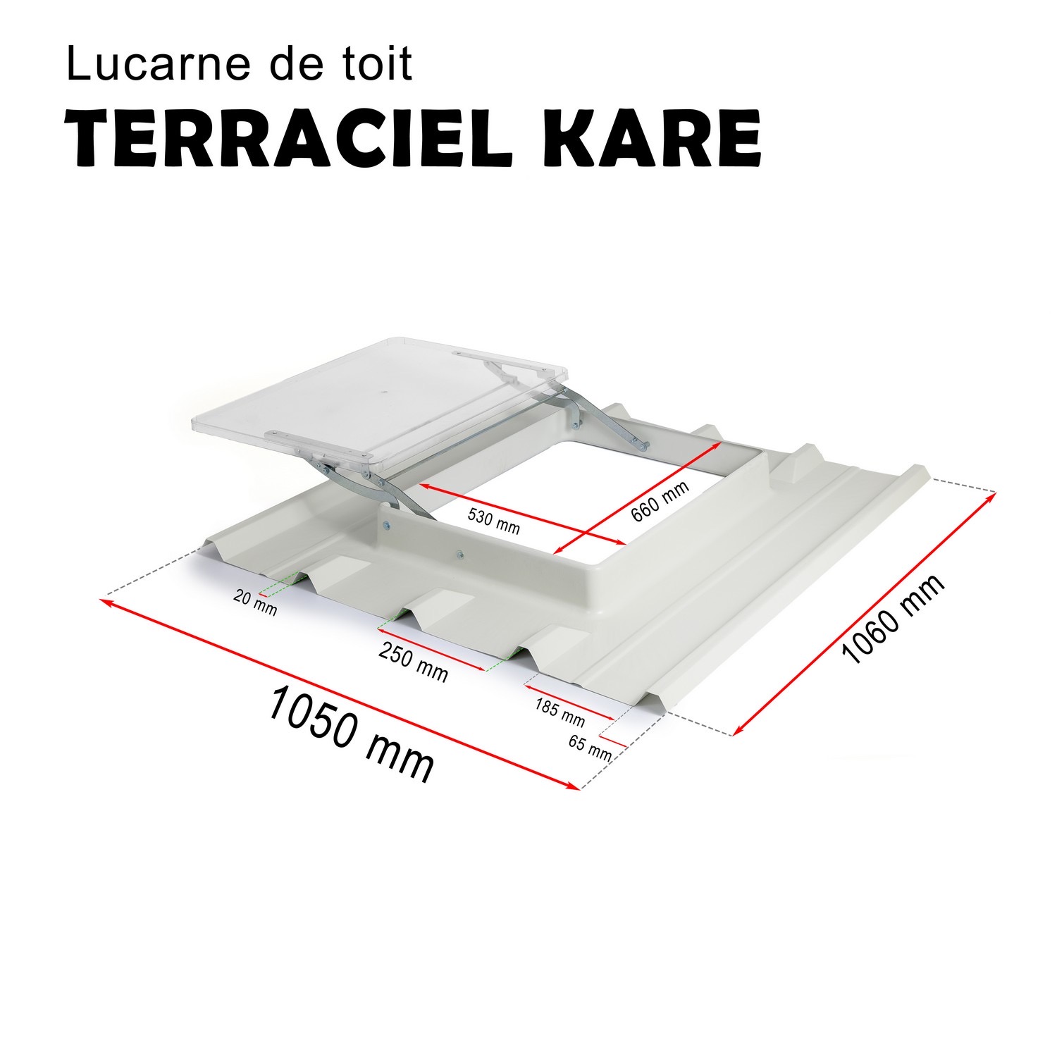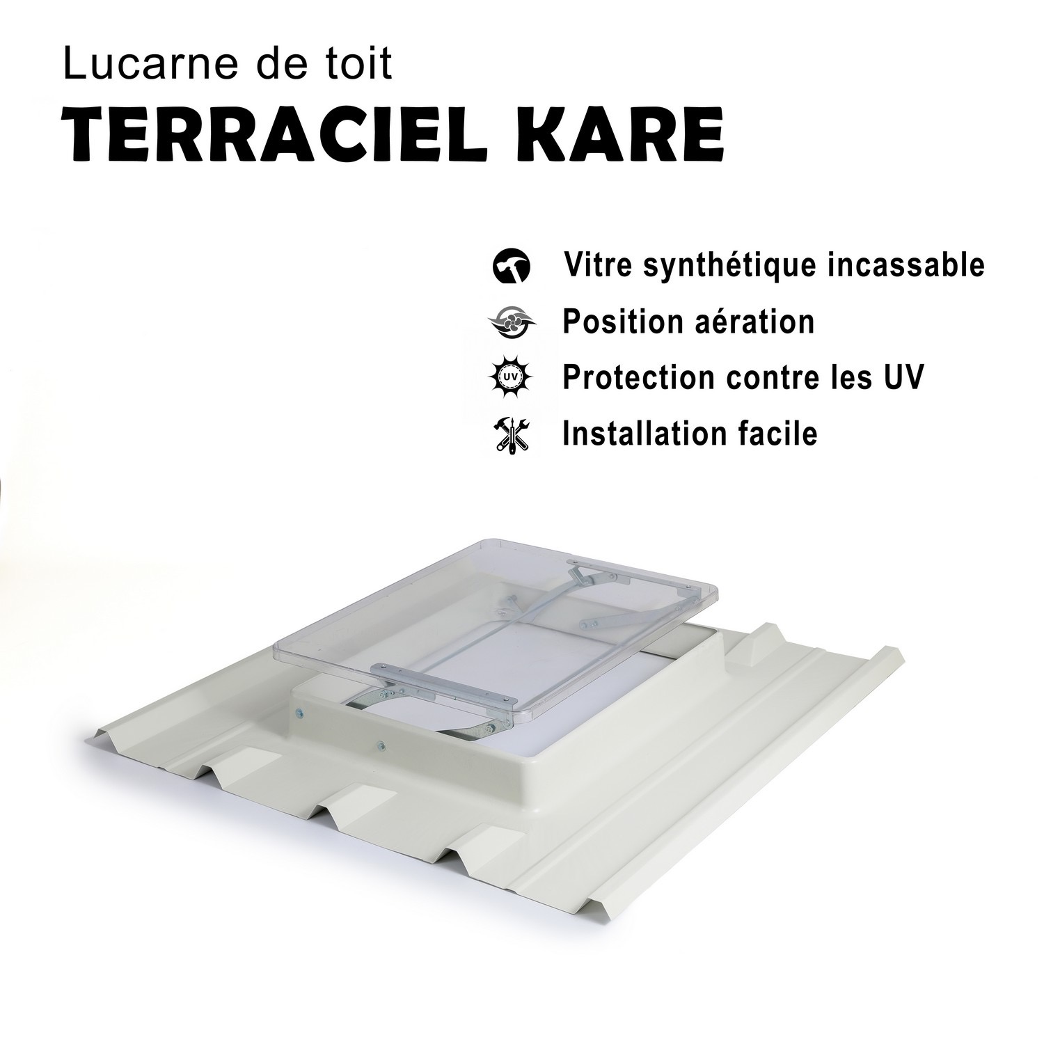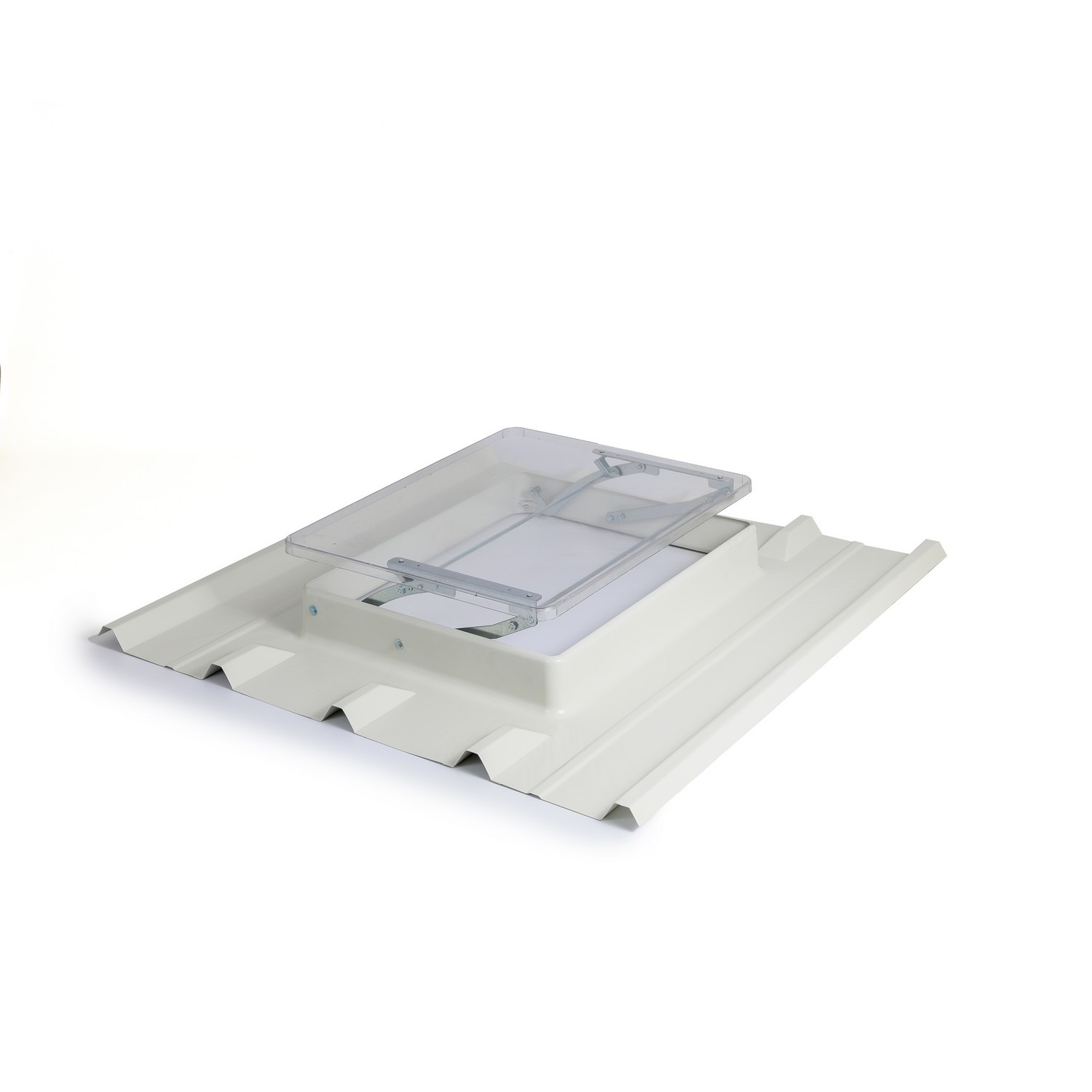 Lucarne de toit pour tôles bac acier ondulés profil 5 ondes – RAL 9002 Blanc – Vitre Synthétique incassable – LPP TERRACIEL KARE