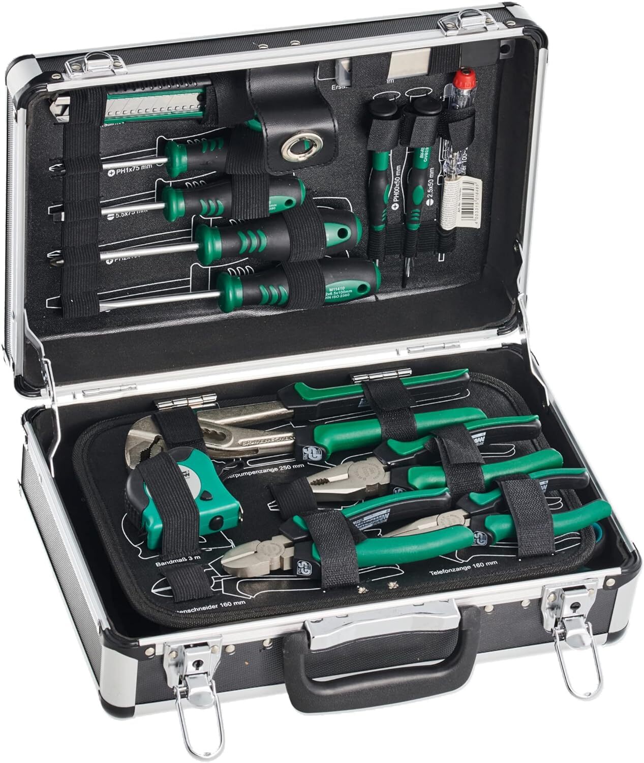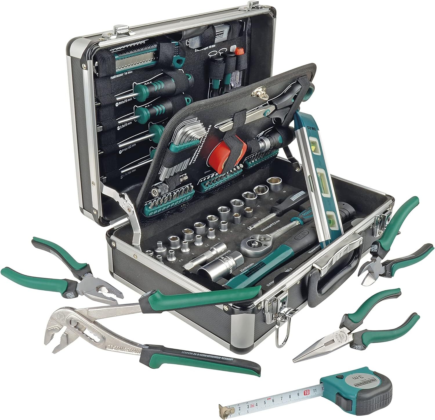 Mallette à outils en aluminium, équipée, 90 pièces – MANNESMANN – M29067