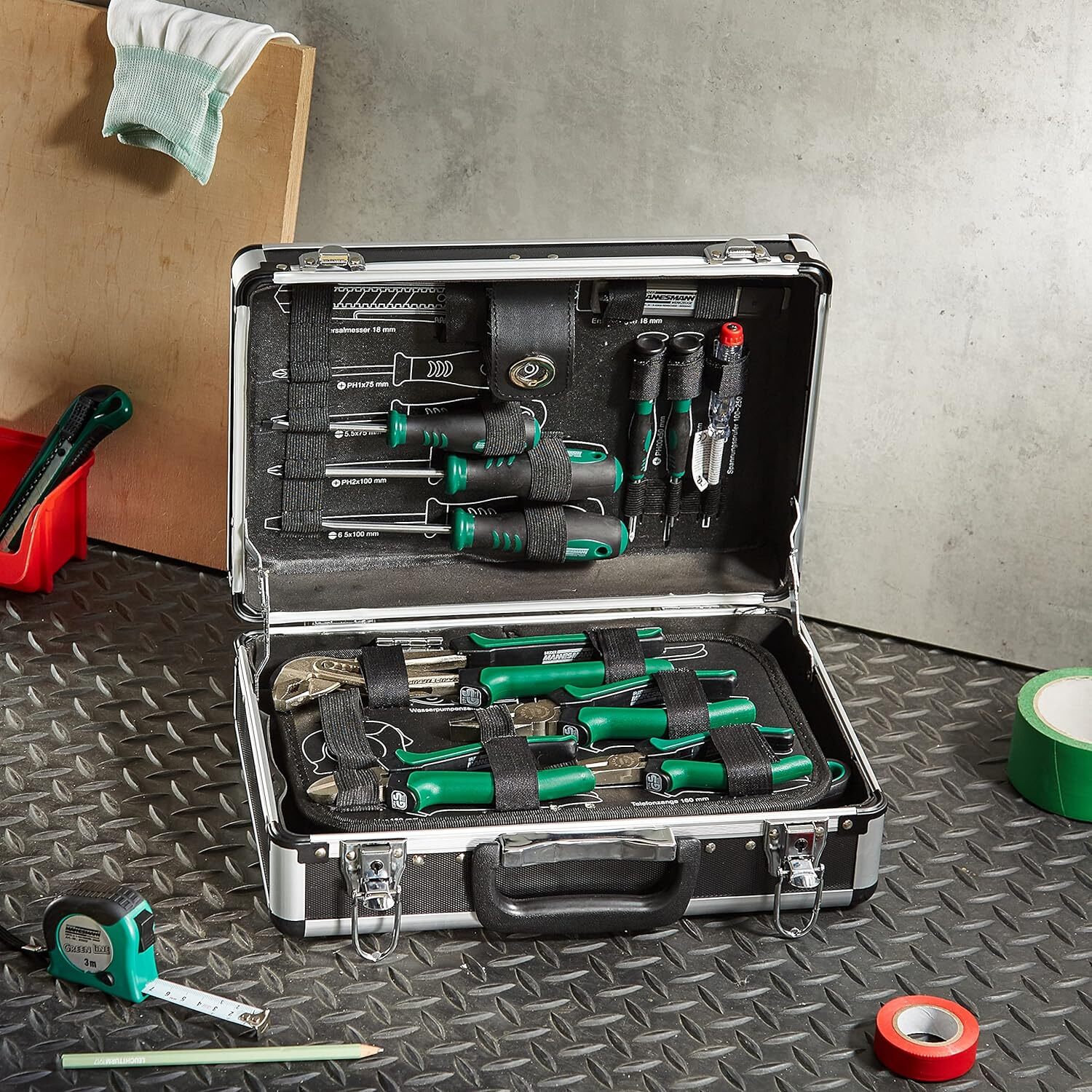 Soyez le premier à laisser votre avis sur “Mallette à outils en aluminium, équipée, 90 pièces – MANNESMANN – M29067”