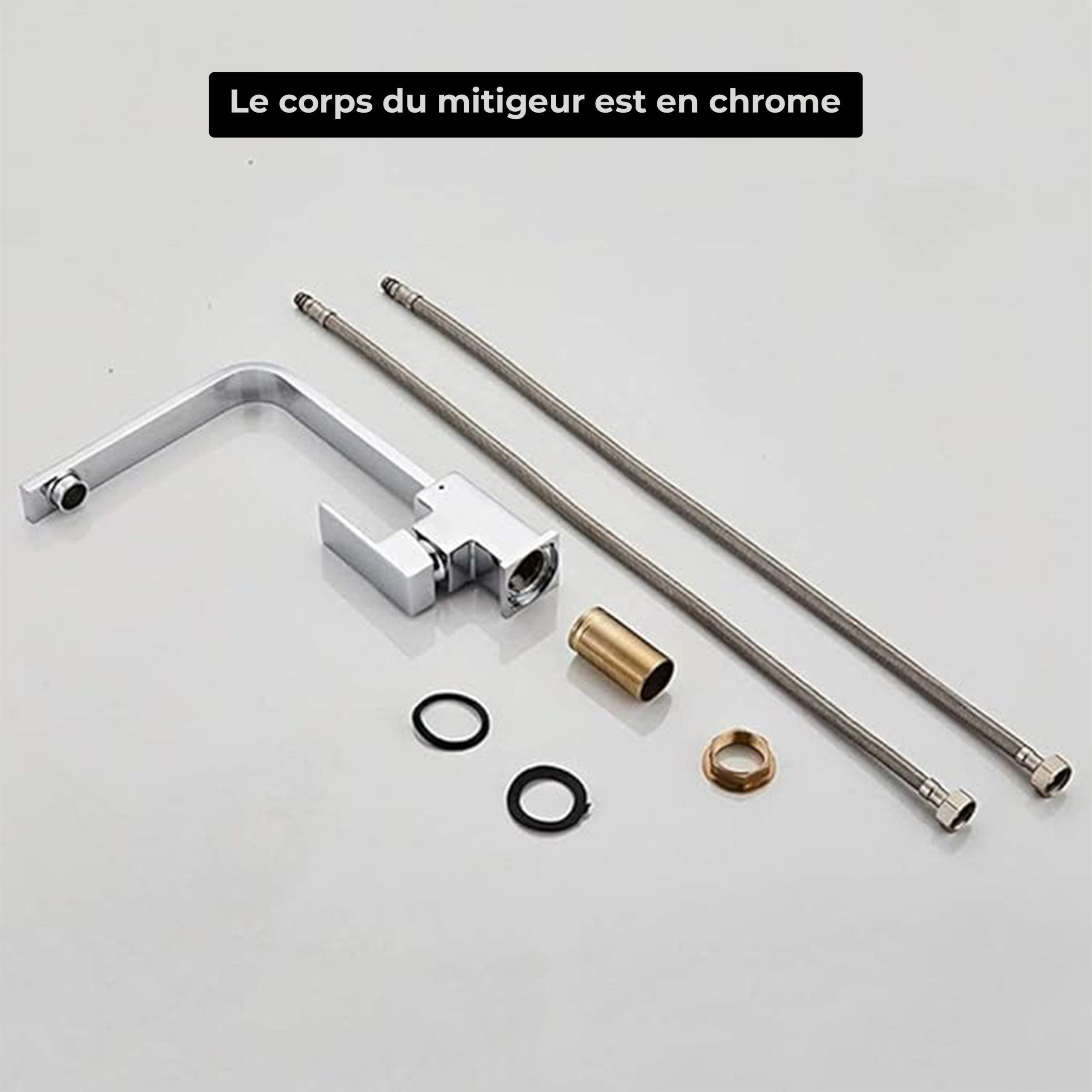 Soyez le premier à laisser votre avis sur “Robinet de cuisine chromé carré moderne en laiton avec bec en forme de L, pivotant à 360°, monocloc – LUCCA- LPP”