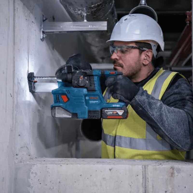 Par ailleurs, percez dans le béton en toute tranquillité, en minimisant les risques tels que la fatigue musculaire, les secousses inopinées et l’inhalation de poussière grâce au GBH 18V-22 Professional. Compact, léger et ergonomique, cet outil présente un centre de gravité optimal pour faciliter le maniement et réduire la fatigue, particulièrement lors des perçages en hauteur.