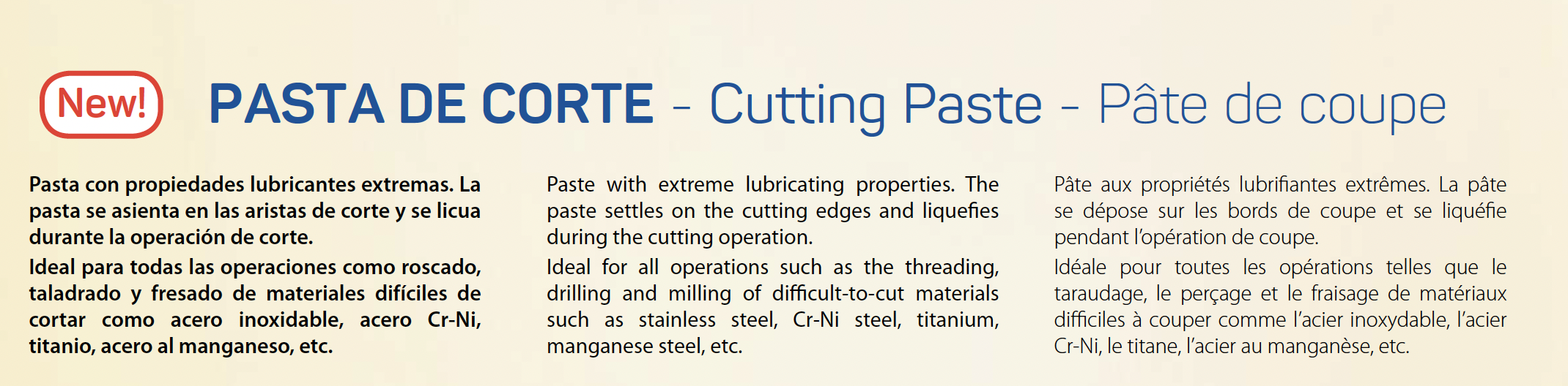 Pâte aux propriétés lubrifiantes extrêmes. La pâte se dépose sur les bords de coupe et se liquidifie pendant l’opération de coupe.