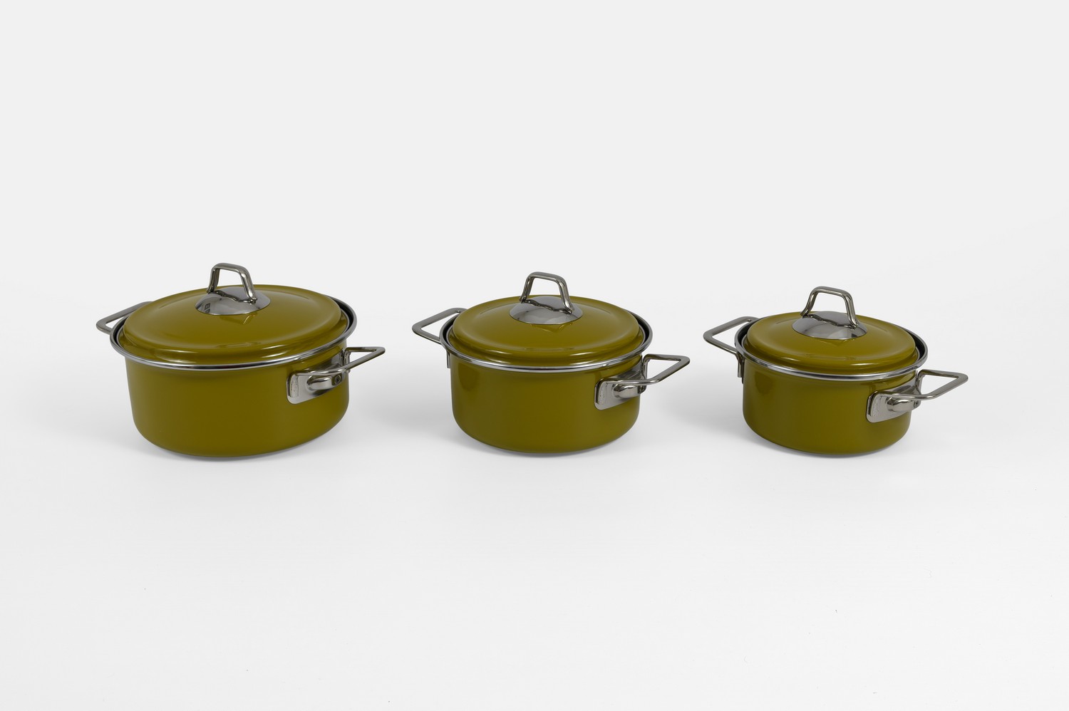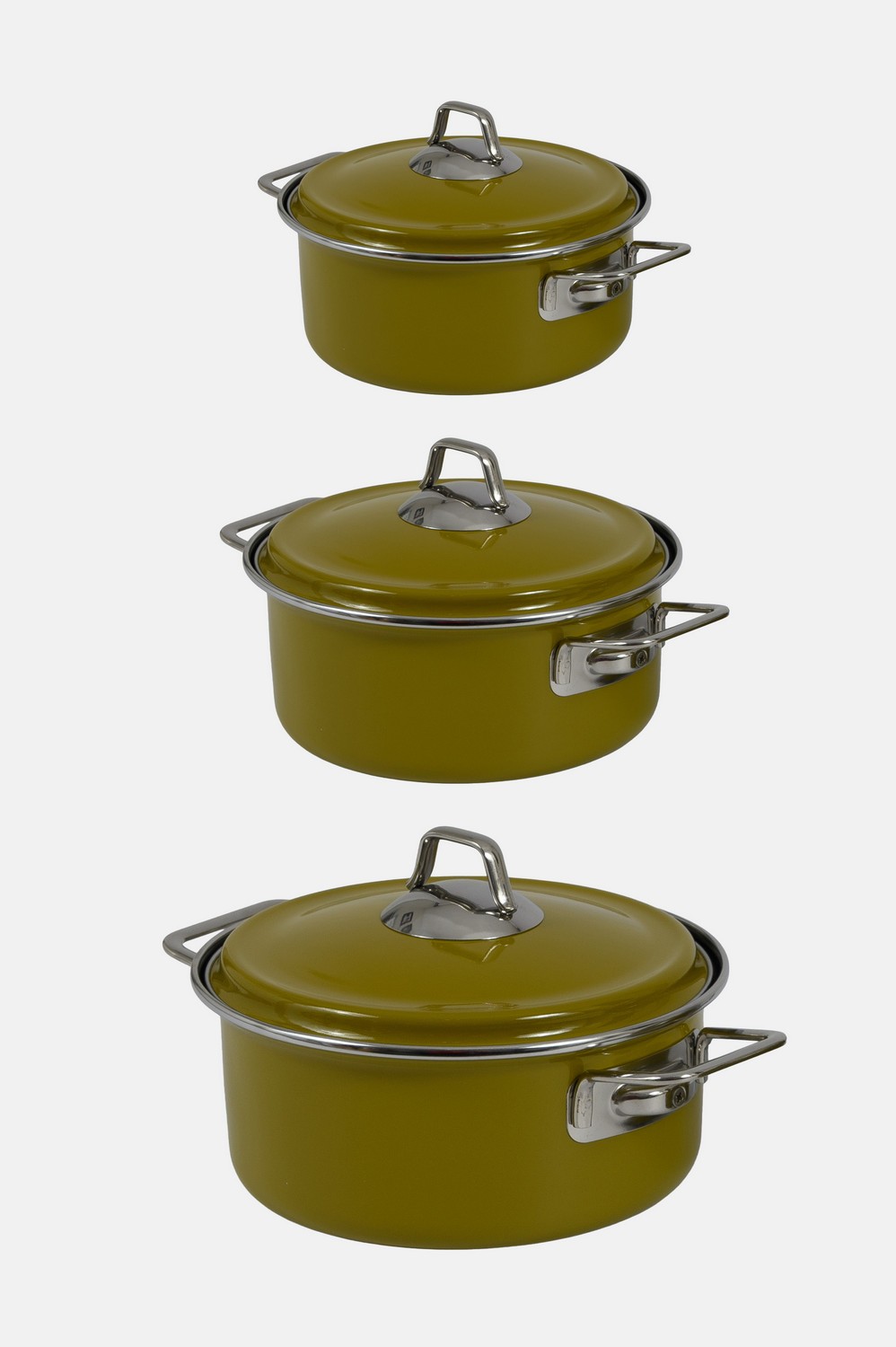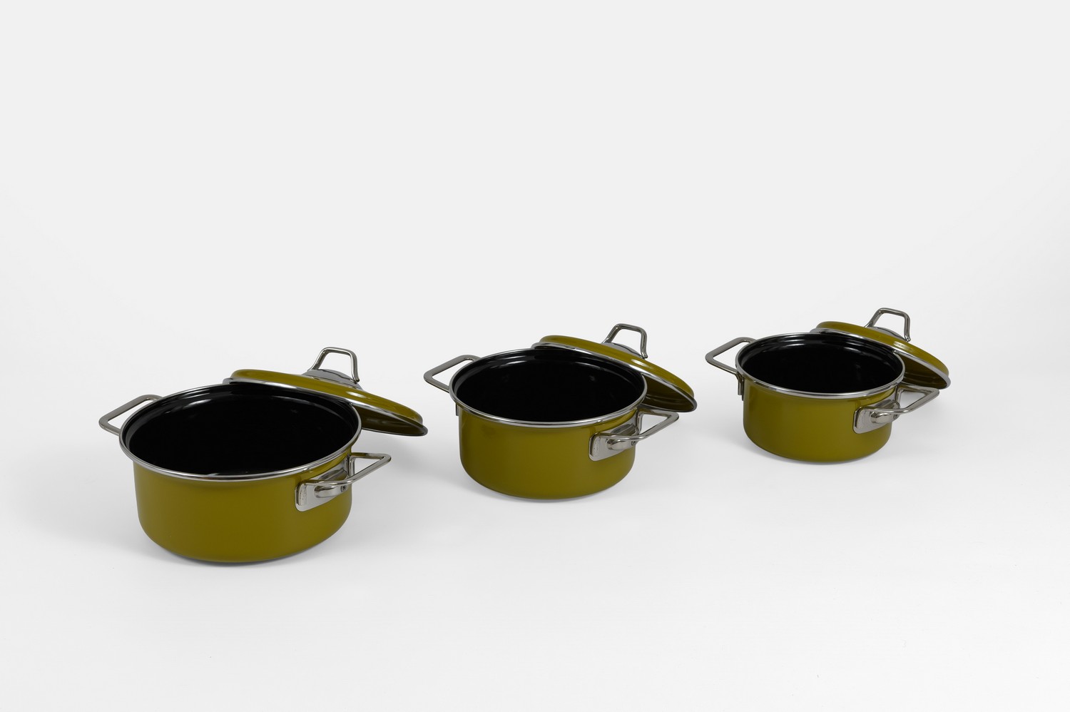 Set de 3 Casseroles en Acier Émaillé avec Couvercles 14 / 16 / 18 cm – Vert Kiwi – Résistantes et Compatibles Tous Feux – Batterie de Cuisine – LPP GRANDEUR 07