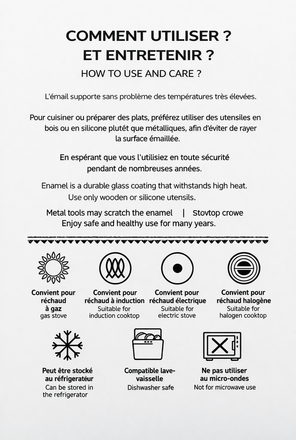 - Compatible tous feux : utilisable sur tous types de plaques de cuisson