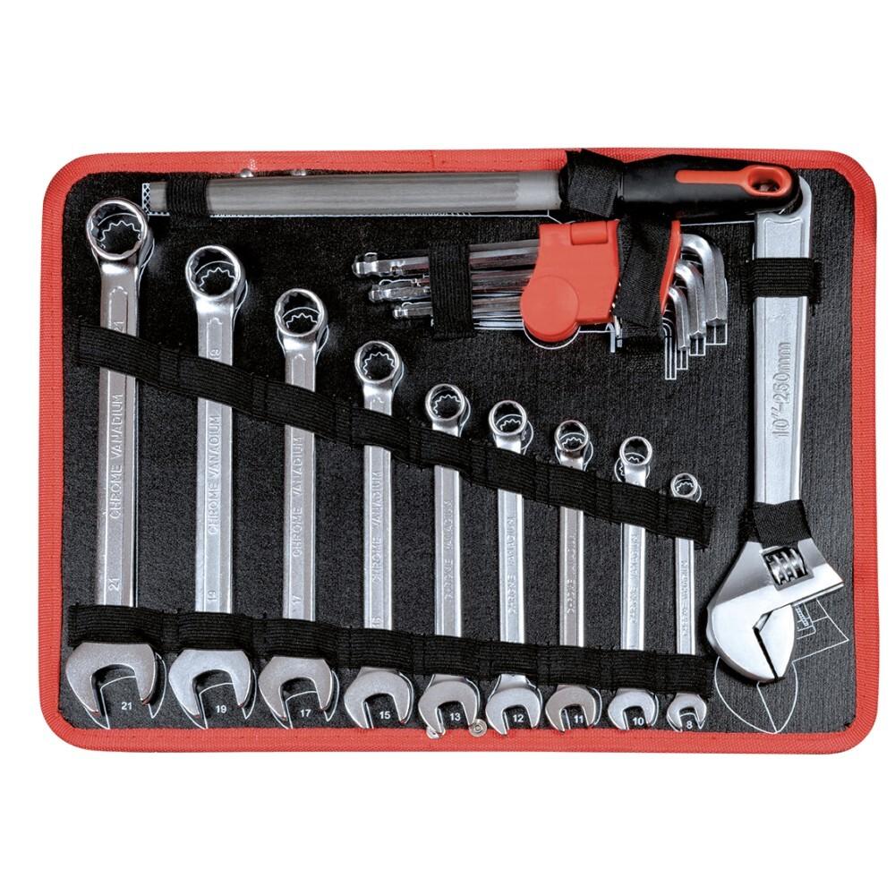 * 9 clés mixtes en acier chromé : 8, 10, 11, 12, 13, 15, 17, 19 et 21 mm