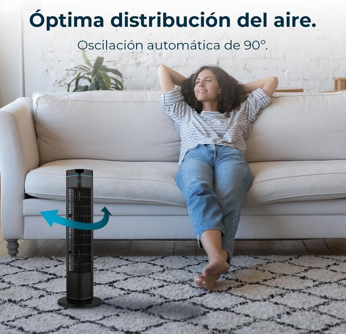 - Ventilateur colonne de 50 W avec minuterie et oscillation.